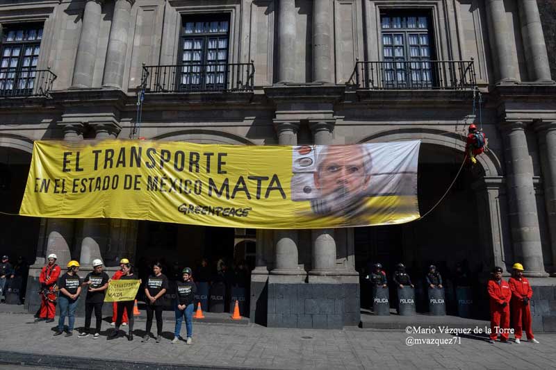 - Greenpeace lleva mensaje a Del Mazo : “El transporte en el Estado de México mata”.