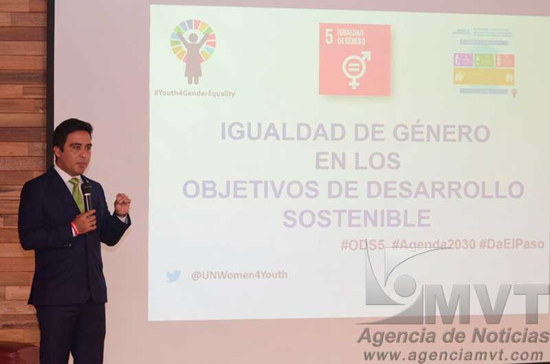 TOLUCA, México, 12 de Enero.- Francisco Carrasco Romero, integrante de la Agencia de Redes de las Naciones Unidas para el Desarrollo de la Juventud y la Defensa de la Igualdad de Género, encabezó la conferencia Planeta 50/50, en el auditorio del Museo Torres Bicentenario de la capital mexiquense, organizada por el Instituto Municipal de la Juventud de Toluca, que tuvo el objetivo de dotar información a los jóvenes para avanzar en la igualdad de género en el entorno donde se desenvuelven diariamente.