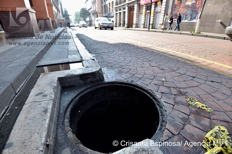 En pleno Centro Histórico hay una coladera abierta en la Avenida Miguel Hidalgo, casi esquina con Ignacio Allende, donde a diario transitan miles de personas y en la que no hay señalización alguna para prevenir a la población.