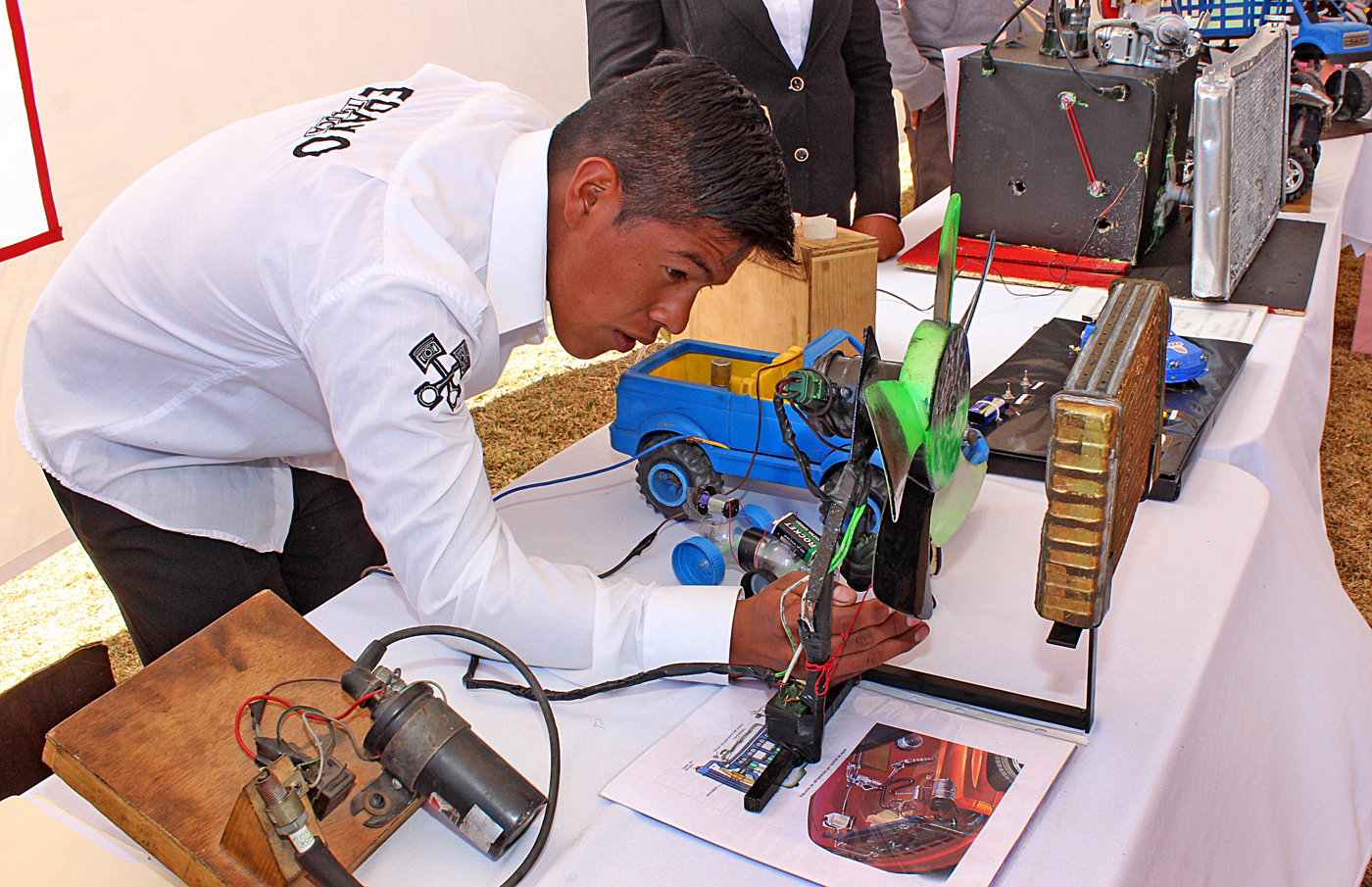 Después de la entrega simbólica de constancias y diplomas a los alumnos becados, las autoridades realizaron un recorrido por la exposición del EDAYO.