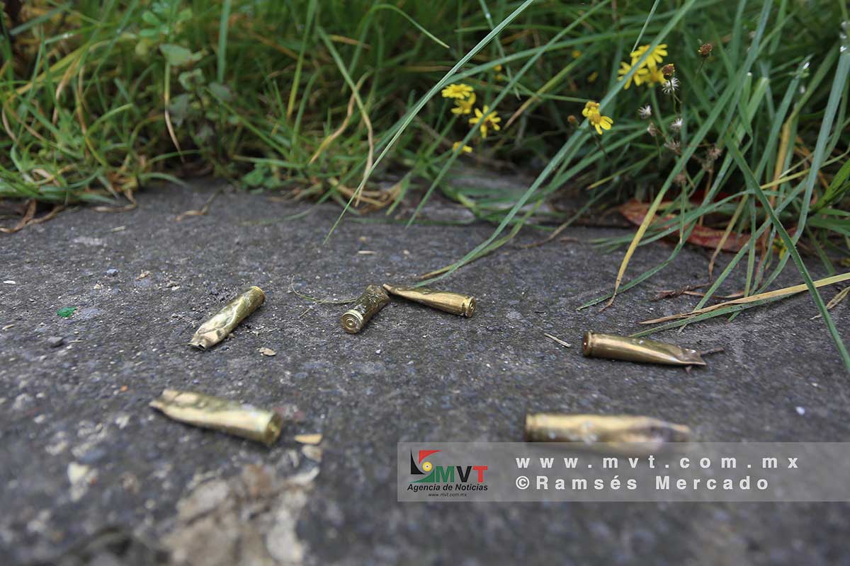 En el lugar se contaron más de 30 casquillos percutidos, y se espera la presencia de la FGJEM. No hubo personas aseguradas, huyeron en otro vehículo.