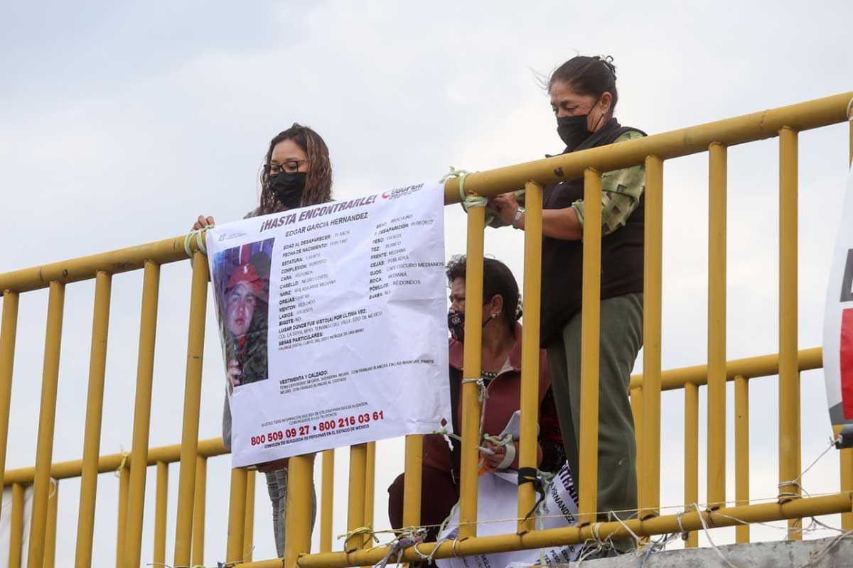 El bloqueo fue de manera intermitente en sentido hacia Toluca y una vez que arribó personal de la Fiscalía General de Justicia del Estado de México se decidió colgar las mantas con las fichas de búsqueda en el puente peatonal de la zona y esperar a que se les den los avances de la carpeta de investigación.