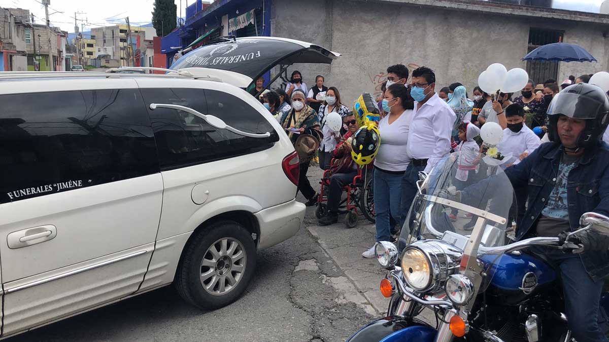 TOLUCA, México, 2 de Agosto de 2022.- Tras más de año y medio luchando contra el cáncer y la crisis en el abasto de medicamentos oncológicos, el pequeño Elías falleció el fin de semana, por lo que la tarde del lunes fue despedido en la delegación de San Buenaventura, municipio de Toluca, entre motocicletas, globos, flores y el amor de sus familiares y amigos.