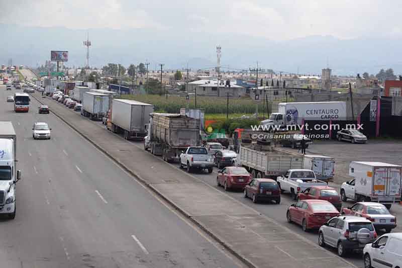 El tránsito en la zona se colapsó por completo en la carretera Toluca-Naucalpan con dirección a Xonacatlán debido a que los manifestantes cerraron los carriles centrales y laterales.