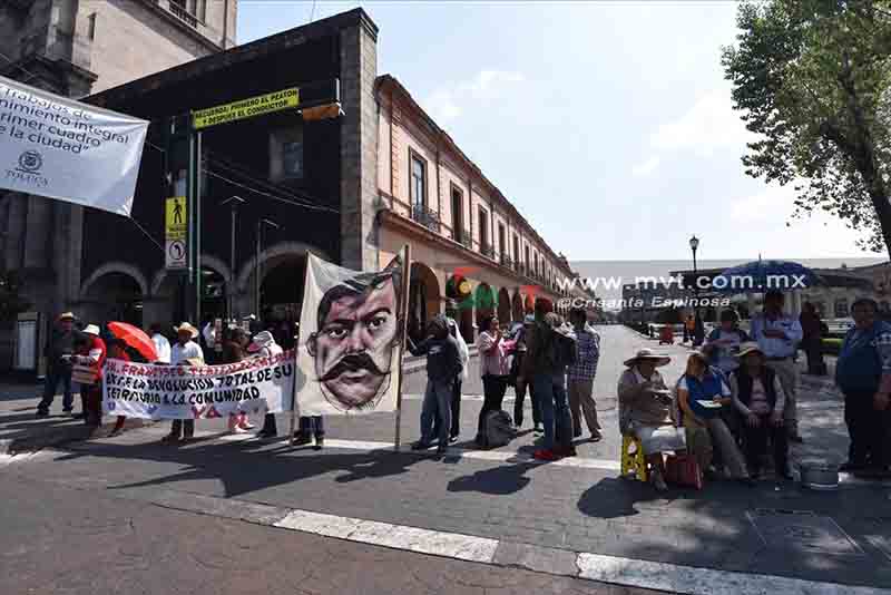 Toluca México a 6 de febrero del 2019.- Por sexta ocasión en los últimos meses, vecinos de la localidad de San Francisco Tlalcilalcalpan piden que se reconozca como municipio independiente de Almoloya de Juárez y lo hicieron desquiciando el tránsito en el Centro Histórico de Toluca.