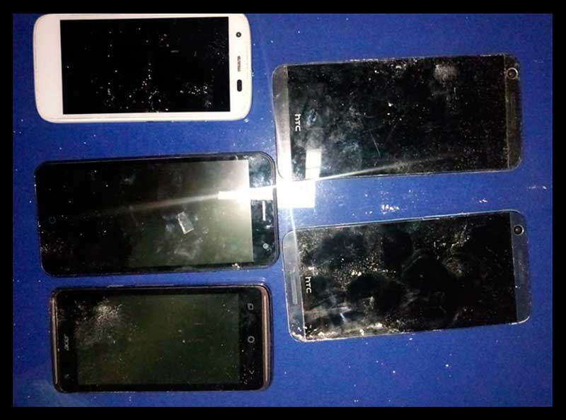 Ocultos entre bolsas de harina, los guardias del Penal de Santiaguito encontraron cinco teléfonos celulares con las siguientes características: