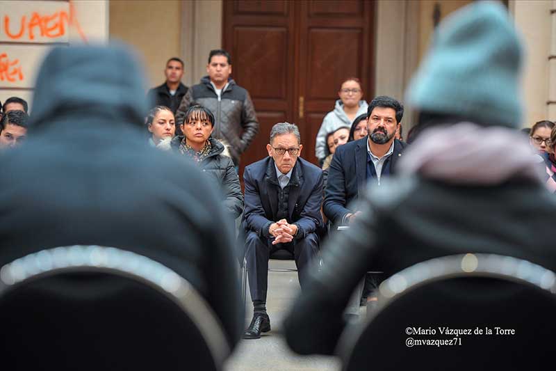 En el Patio del Centenario del Edificio de Rectoría, donde también se dieron cita especialistas en perspectiva de género, se dio seguimiento al pliego petitorio de los colectivos feministas del pasado 13 de diciembre y el rector manifestó la voluntad de trabajo de la Administración 2017-2021, así como su convicción para sostener un diálogo pacífico, en un ambiente respetuoso para todos los integrantes de la UAEM.
