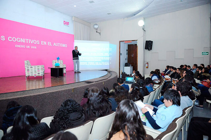 Toluca, México, 23 de enero de 2018.- Para brindar información sobre el autismo y así mejorar la condición de quienes lo padecen, el Sistema para el Desarrollo Integral de la Familia del Estado de México (DIFEM), en coordinación con Autismus, institución de Asistencia Privada, realizó un ciclo de conferencias con el lema “Procesos cognitivos en el autismo”.