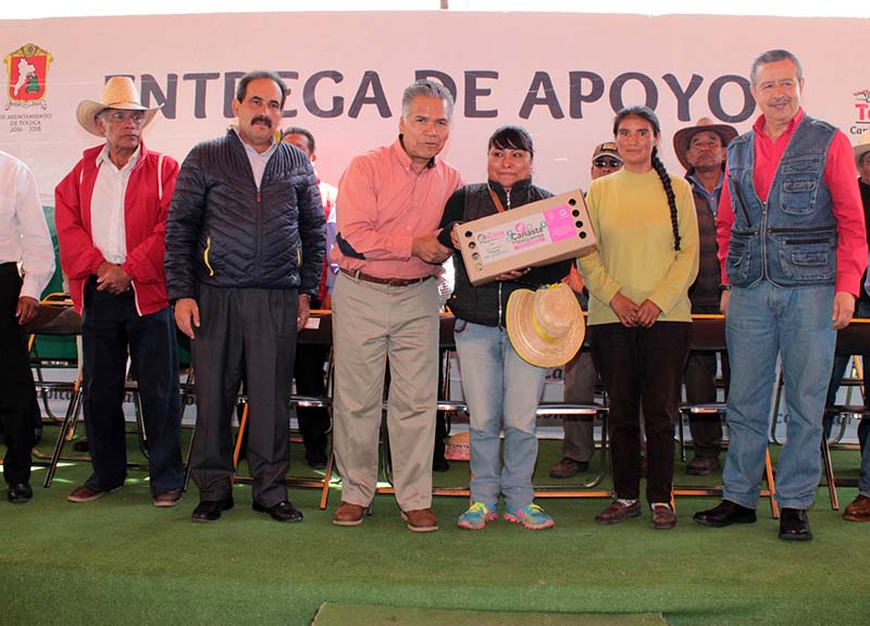 TOLUCA, México, 26 de Junio.- “Estamos contentos y agradecidos con la entrega del paquete de pollitos que consiste en ocho hembras y dos machos, es un gran apoyo para nuestras familias; aunque por ahora están pequeños, en unos meses estaremos comiendo huevito, alimento nutritivo y básico, sobre todo para los niños” aseguró Roberto Dolores, durante la entrega realizada por el presidente municipal de Toluca, Fernando Zamora Morales, de mil cien Paquetes de Aves de Postura, en San Diego de los Padres Cuexcontitlán, para igual número de familias de diez comunidades del municipio.
