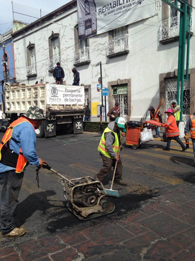 De acuerdo con la Dirección General de Servicios Públicos, las cuadrillas de bacheo laboraron en Paseo Totoltepec, en el tramo comprendido de Paseo Tollocan a Lombardo Toledano, delegación Santa María Totoltepec; en la avenida Venustiano Carranza, entre calle Ignacio M. Altamirano y Quintana Roo, colonia Universidad, así como en la calle Pino Suárez, delegación Santa Ana Tlapaltitlán.