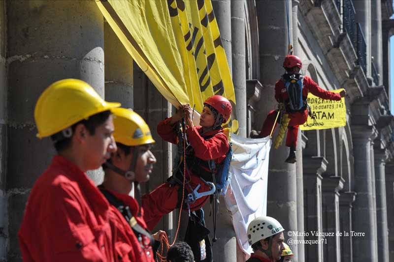 Toluca México, 20 de febrero 2020.- «El gobierno de Alfredo Del Mazo no tiene palabra y se escabulle para incumplir sus propios acuerdos» señaló la organización internacional Greenpeace tras la protesta que llevó a cabo el pasado 18 de febrero, en la que activistas desplegaron en el Palacio de Gobierno en Toluca una manta con el mensaje “El transporte en el Estado de México mata” y funcionarios del gobierno del Estado de México se comprometieron a que este miércoles 19, darían una fecha para la realización de una reunión pública para discutir una verdadera transformación del transporte en la entidad, pero esto no sucedió.