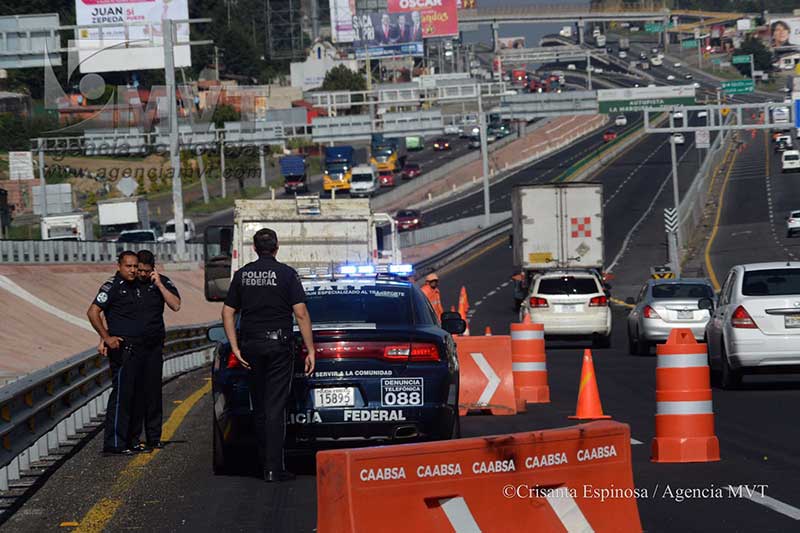 OCOYOACAC, México, 28 de Mayo del 2017.- Desde la mañana de este lunes la Policía Federal inició operativos de forma permanente para evitar que camiones de carga circulen por la autopista La Marquesa-Lerma luego del accidente ocurrido el sábado pasado en la caseta de cobro en el que falleció una familia y otra resultó lesionada.