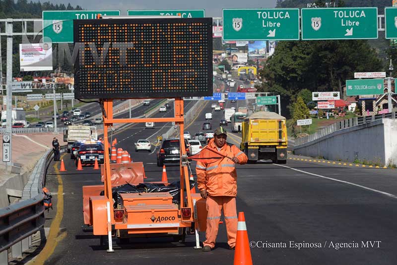 Mediante un recorrido hecho a la altura de la Marquesa y a la altura de las casetas de cobro, se pudo constatar que durante las primeras horas, el flujo vehicular fue desviado hacia los carriles de la carretera libre México-Toluca, sólo con dirección a la capital mexiquense.