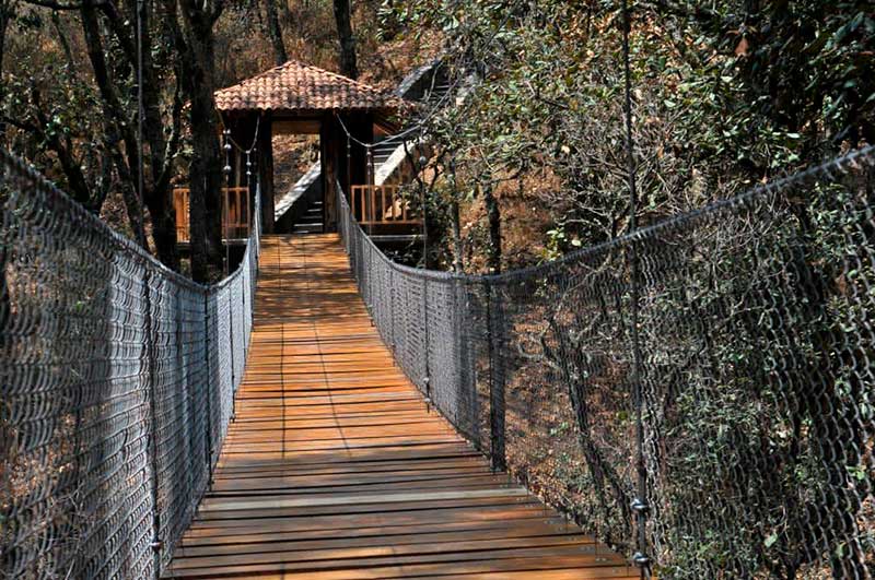 “Éste es el Parque Xocotépetl, en Jocotitlán, y tiene muchos atractivos, este puente colgante que vemos, en el que estamos ahorita precisamente. Acá podemos ver, hacia allá atrás tenemos un puente tibetano que también se puede recorrer, está muy interesante, una tirolesa y uno de los atractivos más importantes es un muro para escalar, el más alto que hay en el Estado de México, 14 metros de altura, tiene tres paredes distintas, con distintos grados de dificultad para poder escalar», precisó.