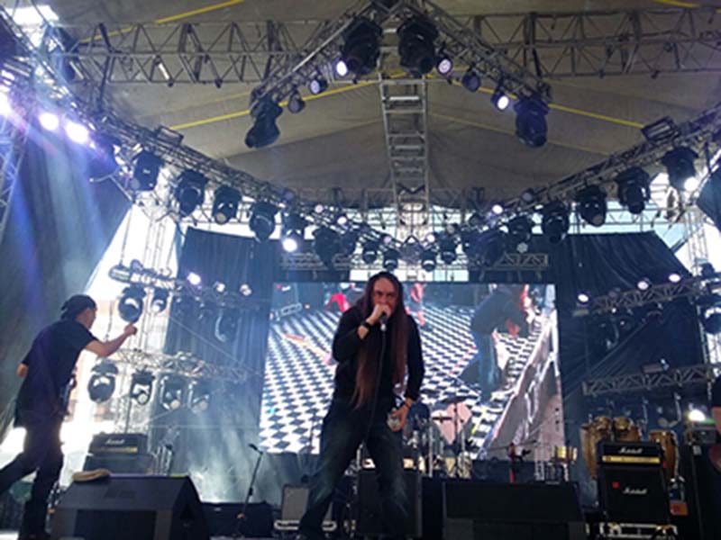 encendiéndolos con su música de metal extremo en la Plaza Juárez.