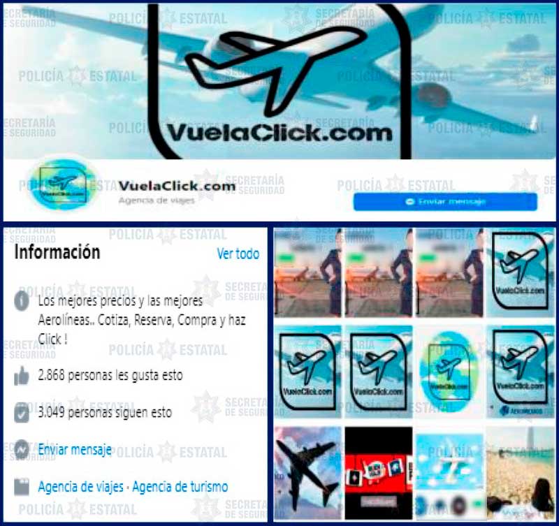 A través de un comunicado la SS informó que de acuerdo a las denuncias canalizadas a través de la línea 089 y como resultado del patrullaje cibernético, personal de la SS localizó el sitio en Facebook denominado “Vuela Click. com”, creado el 23 de noviembre del año 2019, y a la fecha cuenta con más de 3 mil seguidores, por lo que, al describirse como una “Agencia de Viajes” ofrece boletos de avión de diferentes aerolíneas con atractivos descuentos.