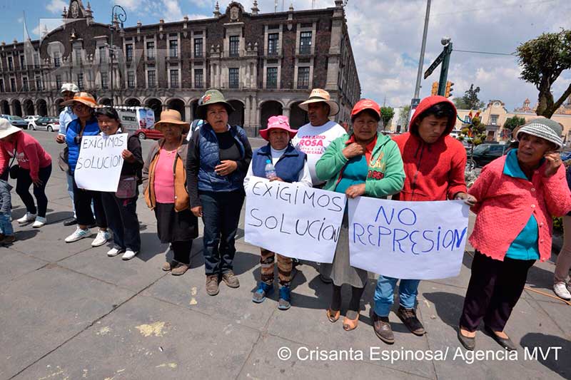 TOLUCA, México, 22 de Marzo del 2018.- Integrantes del Frente Mazahua se manifestaron frente al Palacio de Gobierno estatal, en Toluca, para fijar un ultimátum a la autoridad mexiquense, y advirtieron que si antes del 3 de abril no reciben una respuesta concreta a su demanda de pago por las afectaciones causadas por la construcción y operación del sistema hidráulico Cutzamala, tomarán medidas extremas.
