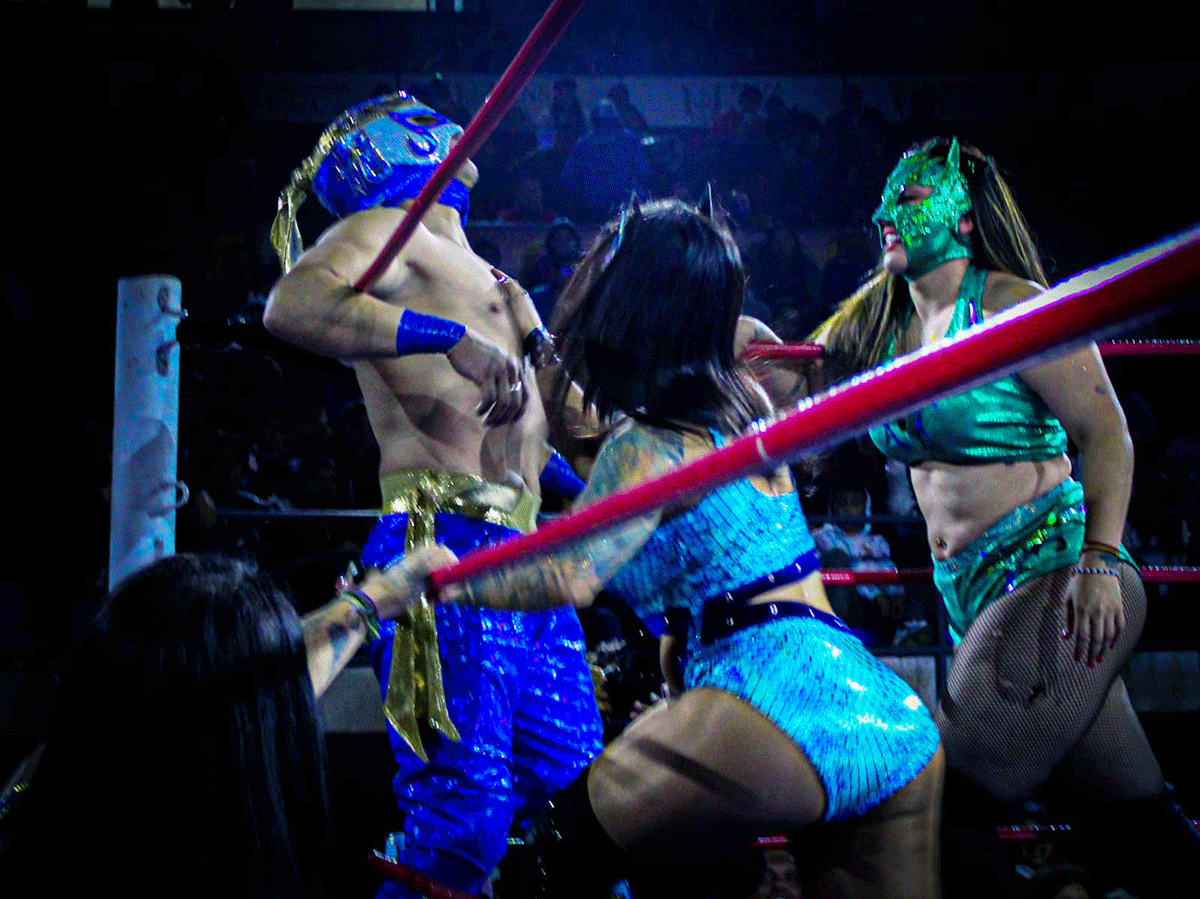 En la lucha de parejas mixtas, la Hiedra llegó motivada tras su participación la semana pasada en el Mundial de Lucha Libre celebrado en Guadalajara y, junto con Mr. Iguana vencieron a Lady Shani y Octagón Jr., además de Sexy Star y Komander.