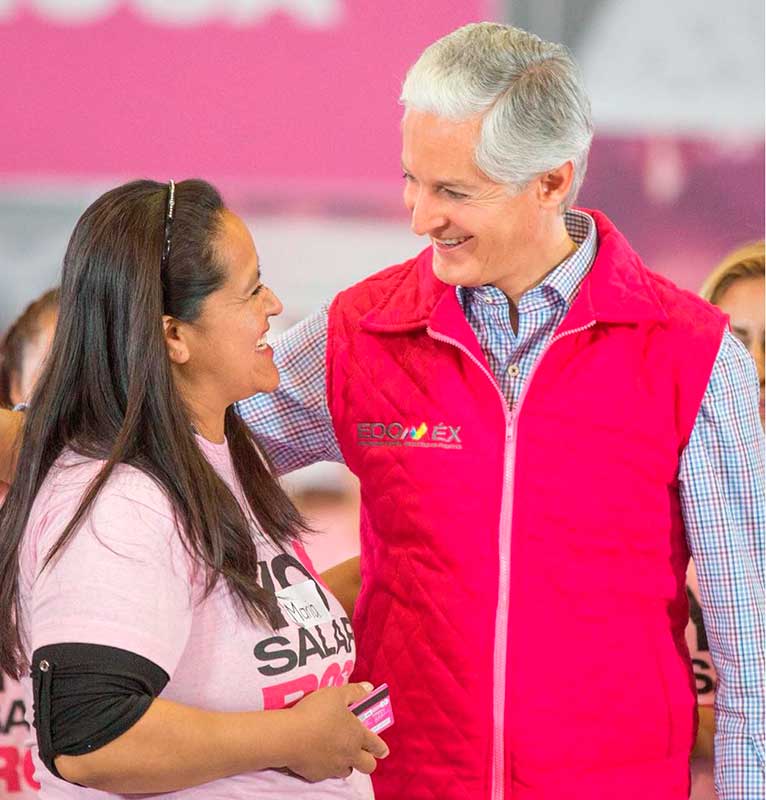 Luego de la entrega de tarjetas del Salario rosa a amas de casa de Tlalnepantla, el gobernador del Estado de México reiteró que este programa acompañará de manera permanente a este sector de la población, mediante el cual recibirán de manera bimestral 2 mil 400 pesos.