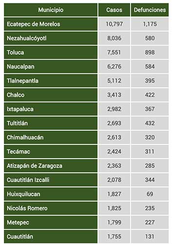 Toluca, México, 24 de octubre de 2020.- El municipio de Toluca se coloca en el segundo municipio con mas muertes por Covid-19 del Estado de México con 898 después de Ecatepec que registra 1,175 y por el número de casos confirmados se coloca la capital del estado en tercer lugar con 7,551 después de Ecatepec y Nezahualcoyotl.