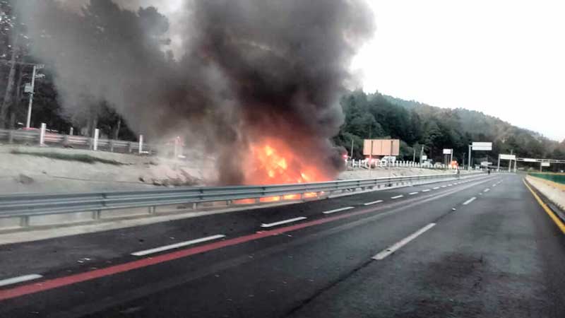 El accidente ocurrió a las 19:30 horas de este jueves con dirección a la ciudad de Toluca, la circulación esta cerrada parcialmente mientras labora el personal del cuerpo de Bomberos.