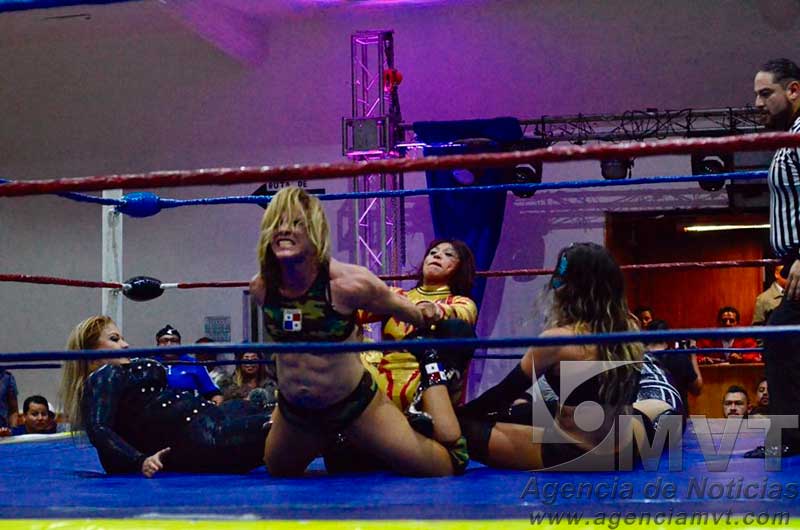 Las féminas también hicieron acto de presencia, La Jarocita, Princesa Sujey y Marcela derribaron la tripleta de Tíffany, Amapola y Daly’s, quienes se midieron en el cuadrilátero con autoridad; sin embargo, la estrategia y sincronía de la tríada ruda se impuso en la justa.